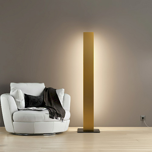 Lineare Stehleuchte mit indirekter Lichtemission.