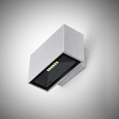 Elegante und schlichte Außenwandleuchte aus Druckguss-Aluminium, erhältlich in zwei Größen (9 cm und 18 cm).