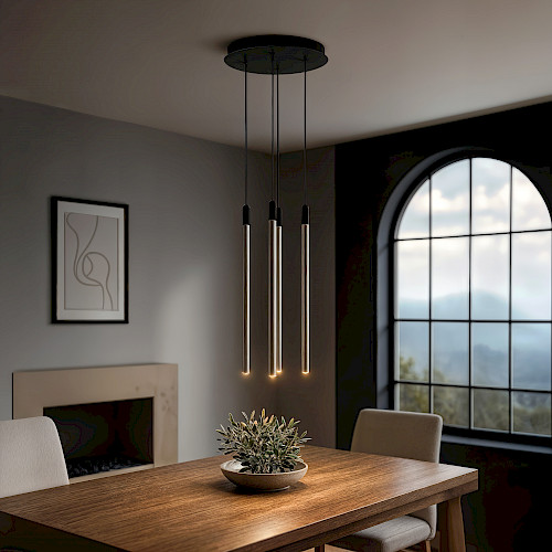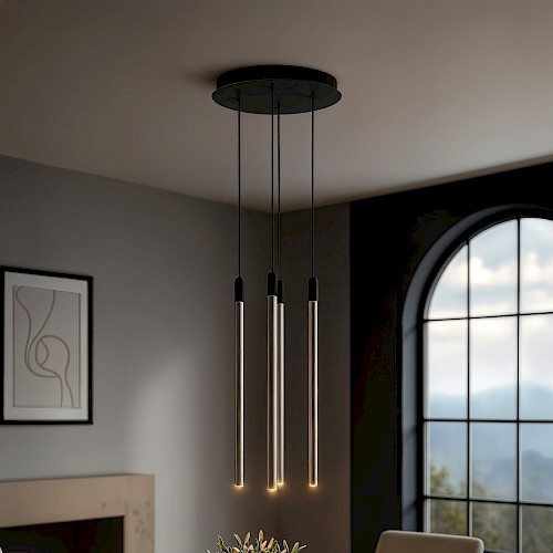 Coordinated and modular elements in different lengths, liquid painted aluminum body with precious two-tone finishes.