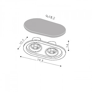 Apparecchio da incasso con cornice ovale, progettato per installazione su controsoffitti in cartongesso.