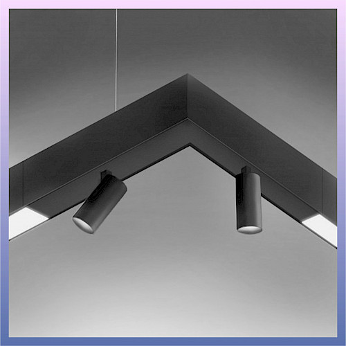 Giunto angolare a sospensione con proiettori a luce concentrata orientabile.