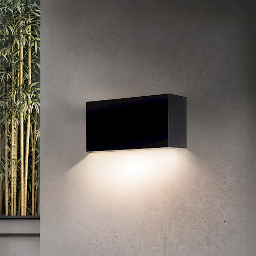 Soluzione dalla linea essenziale per l’illuminazione architetturale radente di ambienti esterni, coordinata con la famiglia simply architectural.