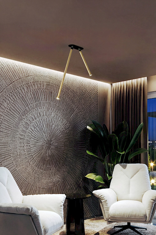 Elementi coordinati e componibili in differenti lunghezze, corpo in alluminio verniciato a liquido con preziose finiture bicolore.